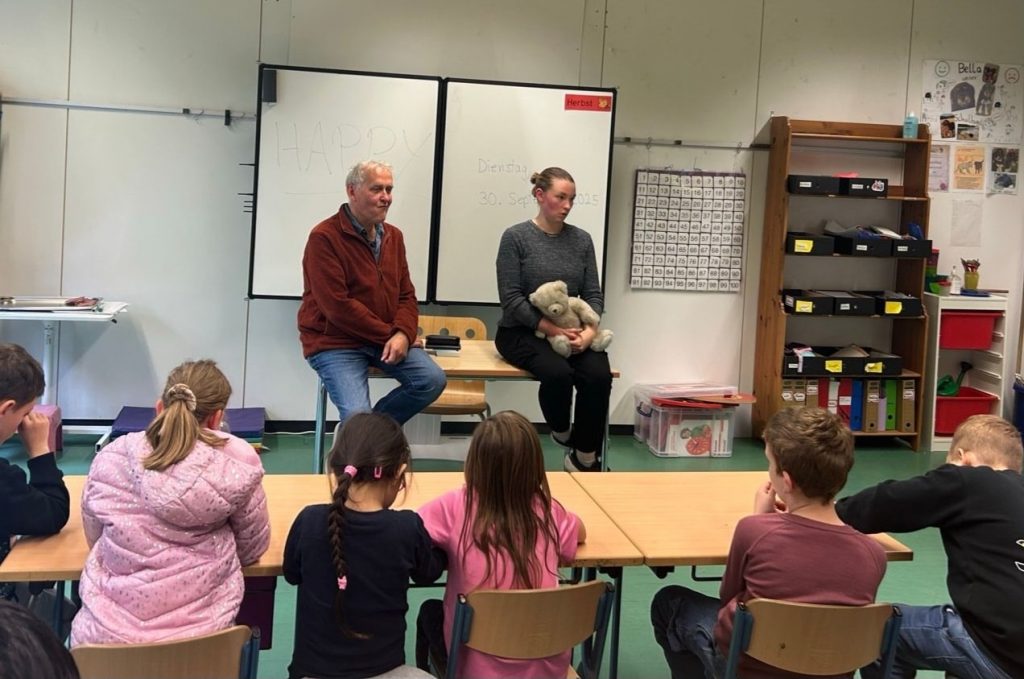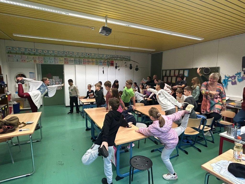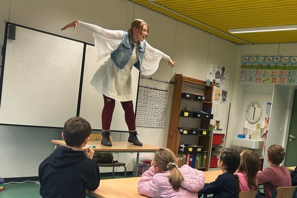 Am 30.09. und 01.10.25 waren Dank der finanziellen Unterstützung durch den Kiwanis-Club Speyer sieben Klassen der Stufen 2-7 der Schule im Erlich zum Theaterstück „Happy Heymflog“ eingeladen, das im eigenen Klassenzimmer aufgeführt wurde. Schüler, Schülerinnen und Lehrkräfte waren ergriffen von der Intensität der Handlung und der großartigen Leistung der Darstellerin Aliki Hirsch vom Kinder- und Jugendtheater Speyer. Sie griff als Friedenstaube Happy kindgerecht das Thema Krieg auf und zeigte, was eine angehende Friedenstaube zu einer echten Friedenstaube macht. Dabei setzte sie sowohl lustige als auch tragische und traurige Momenten ergreifend um. Der anschließende Austausch ermöglichte es den Kindern, Fragen zu stellen und ins Gespräch zu kommen, was auch eifrig genutzt wurde. Nicht alle Kinder haben in ihrem sozialen Umfeld Gelegenheiten, Theater hautnah zu erleben. Deshalb freuen wir uns, dass wir dies durch unser Sponsoring ermöglichen konnten.