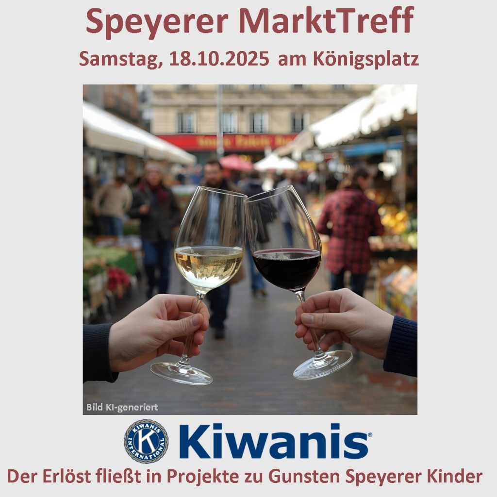 Ein Gläschen für den guten Zweck, ein nettes Gespräch, ein kurze Auszeit von der Hektik. Wir vom Kiwanis-Club Speyer freuen uns auf euren Besuch an unserem Stand beim Markt!