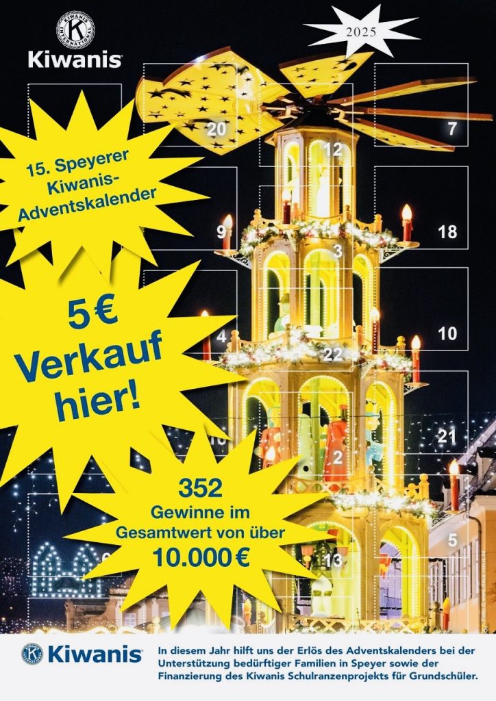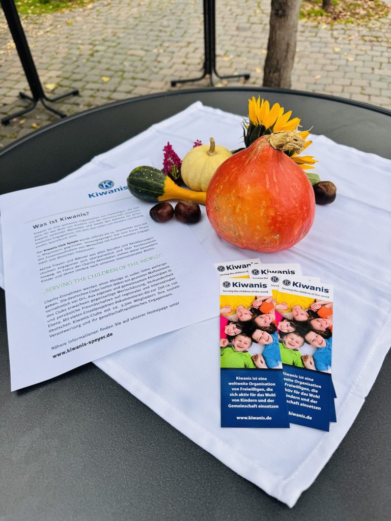 Viele sind vorbei gekommen und haben die Aktion „Marktreff“ am Samstag, 18.10.25 fleißig unterstützt und die besondere Atmosphäre am Kiwanisstand des Speyerer Wochenmarktes so richtig zum gemeinsamen Austausch genutzt. Ein gutes Schlückchen Winzersekt- und wein, sowie der Start des Benefizadventskalenderverkaufs und die Verteilung von Kiwanis Kinder-Warnschutzwesten waren ein rundum gelungenes Angebot für den guten Zweck. Auch herzlichen Dank Frau Münch-Weinmann, Herrn Daum und Herrn Zander von der Stadt Speyer für die tolle Unterstützung. Der Erlös fließt in Projekte zugunsten von bedürftigen Kindern und Jugendlichen in Speyer. Geplant ist, dass im kommenden Jahr auch andere Serviceclubs aus Speyer unter dem Motto „Markt-Treff“ auf dem Wochenmarkt das Speyerer Angebot an sozialem Engagement präsentieren.